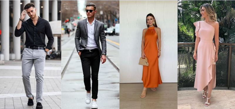 Para os homens: Calça social ou de alfaiataria, camisa ou blazer. Sapatos sociais ou mocassins são bem-vindos, mas tênis casuais sofisticados também são uma opção.